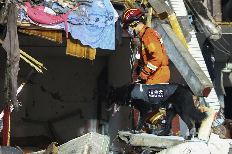 国営新華社(Xinhua)通信の同日の報道によると、タンクローリーは最初の爆発後、高速道路付近の工場に転落し、再び爆発した。救急隊員らは、引き続き捜索と救助活動に当たっているという。(c)AFP