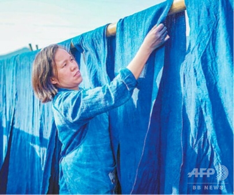 伝統技能に柔軟に科学技術を取り入れ、後進の学びのため賴蕾さんは心を尽くして布を染めている。(c)People's Daily/AFPBB News