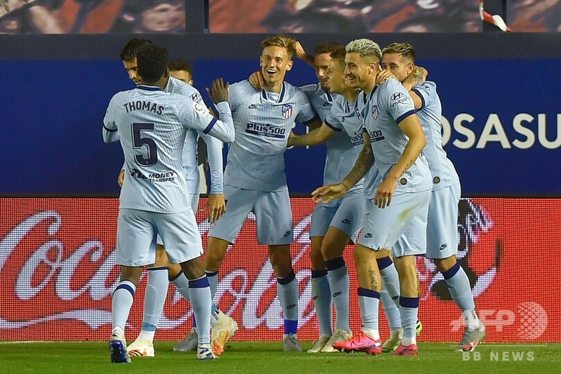 【6月18日 AFP】19-20スペイン1部リーグは17日、第29節の試合が行われ、アトレティコ・マドリード(Atletico de Madrid)はジョアン・フェリックス(Joao Felix)の2得点などで5-0とオサスナ(CA Osasuna)に大勝し、来季の欧州チャンピオンズリーグ(UEFA Champions League 2020-21)出場権が獲得できる4位に暫定的に浮上した。
