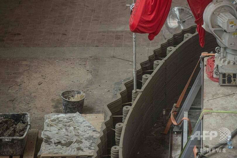 「3Dプリンターで作製された家は、人間や田舎の自然になじむでしょう。この機械は曲線の造形も物ともしません」と語るトルパック氏の横では、プリンターがブンブンと音を立てながらノズルからセメントを噴射し、少しずつコンクリートの層を重ねていた。