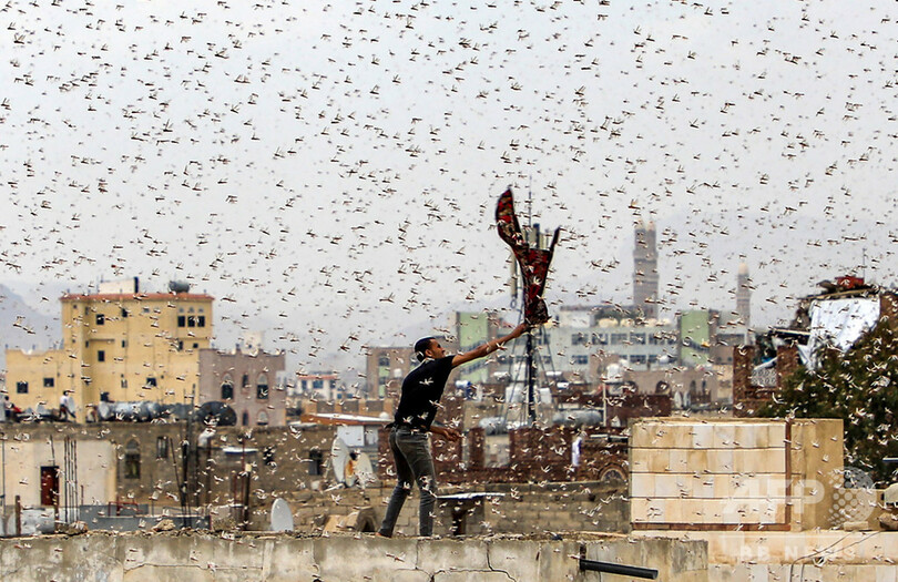 ニュース ライフ 写真特集 【特集】世界中で猛威をふるうバッタの襲来 2020年6月30日 7:00 発信地:その他 このニュースをシェア ‹ › ❮ 1/20 ❯ A man tries to catch locusts while standing on a rooftop as they swarm over the Huthi rebel-held Yemeni capital Sanaa on July 28, 2019. (c)Mohammed HUWAIS / AFP 画像作成中 ! 【6月30日 AFPBB News】AFPのカメラマンらが撮影した、世界中で猛威をふるうバッタの襲来の様子。(c)AFPBB News ライフ 一覧へ> メディア・報道関係・法人の方向け 写真・動画 購入のお問合せ>