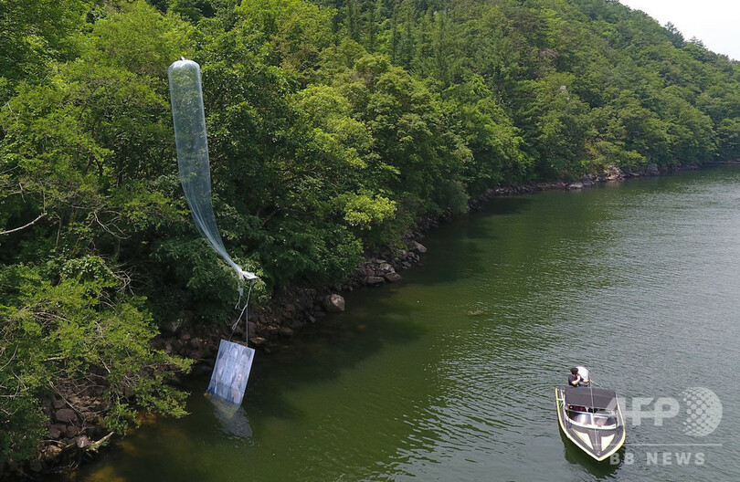 【6月23日 AFP】韓国の脱北者団体は23日、北朝鮮政府を批判するビラをつるした風船を北朝鮮に向けて飛ばしたと発表した。北朝鮮の激しい怒りを招く可能性がある。