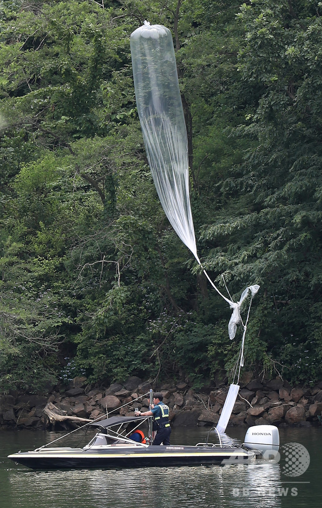 【6月23日 AFP】韓国の脱北者団体は23日、北朝鮮政府を批判するビラをつるした風船を北朝鮮に向けて飛ばしたと発表した。北朝鮮の激しい怒りを招く可能性がある。
