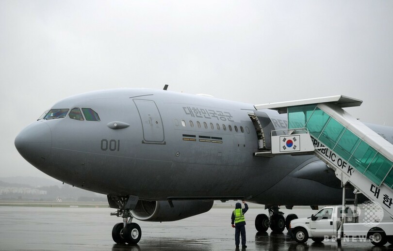 機内を捉えた写真には、兵士一人一人の小さなひつぎが韓国旗に包まれ、各座席に置かれている様子が写っている。