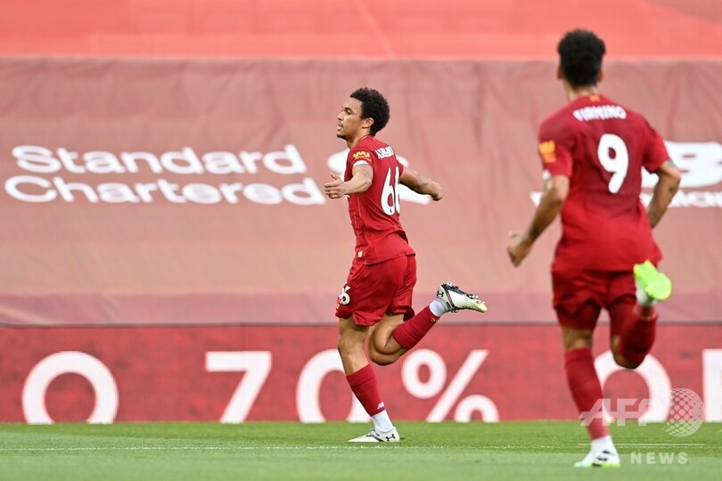 トレント・アレクサンダー・アーノルド(Trent Alexander-Arnold)やモハメド・サラー(Mohamed Salah)、ファビーニョ(Fabinho)、サディオ・マネ(Sadio Mane)が得点を挙げ、本拠地アンフィールド(Anfield)でのリーグ戦再開後最初の試合を制したリバプールは、暫定ながらシティとの勝ち点差を23に広げた。