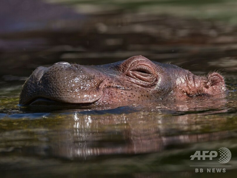 【6月26日 AFP】フランス中部サンテニャンシュルシェール(Saint-Aignan-sur-Cher)のボーバル動物園(Zooparc of Beauval)で今月7日に誕生した雌のカバの赤ちゃん、グロリア。母親と一緒に水中を泳ぐ姿は子どもから大人までを魅了している。(c)AFP