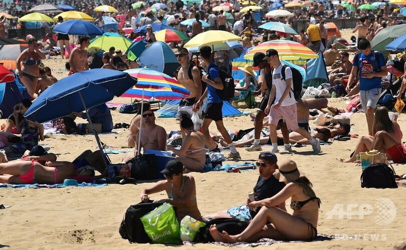 【6月26日 AFP】英国では25日、今年最高の暑さを記録し、新型コロナウイルス感染のリスクをよそに海辺の観光地に大勢の人が詰め掛けた。数千人が押し寄せたイングランド南部の港町ボーンマス(Bournemouth)では、市当局が緊急事態を宣言し、観光客に来訪を控えるよう呼び掛けている。