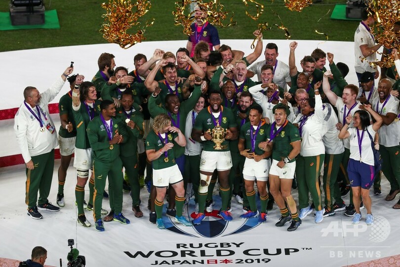 それでも、アリスター・クッツェー(Allister Coetzee)前HCから指揮官の座を引き継いだエラスムスHCは、わずか18か月でチームを笑われものからW杯王者へ生まれ変わらせ、日本大会では決勝でイングランドを32-12で下し、1995年大会と2007年大会に続くW杯優勝に導いた。(c)AFP