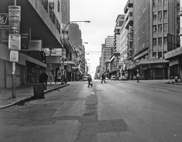 手に入れることができたのは白黒フィルム2箱だけだった。ロンガリ氏が撮影した写真に捉えられているのは、ヨハネスブルクの空気だ。いつもの喧騒(けんそう)が消えている。街が色彩を失ったようだ。読み、耳を傾けて味わえる一編の作品に仕上がっている。