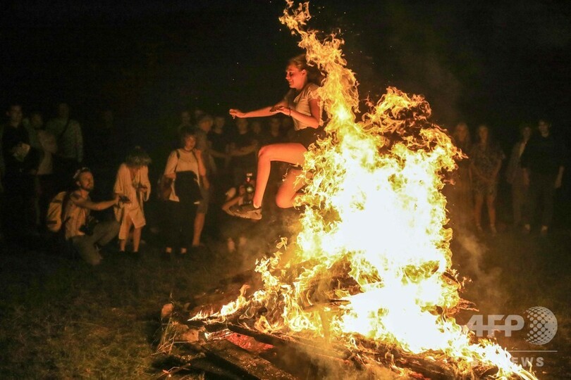 【7月10日 AFP】リトアニア・カウナス(Kaunas)の東にあるルムシスケス(Rumsiskes)の野外博物館で行われた伝統的な夏至祭「ラソス・フェスティバル(Rasos Festival)」に参加する人々。(c)AFP