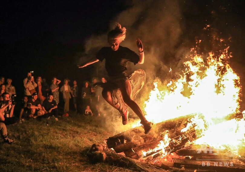 【7月10日 AFP】リトアニア・カウナス(Kaunas)の東にあるルムシスケス(Rumsiskes)の野外博物館で行われた伝統的な夏至祭「ラソス・フェスティバル(Rasos Festival)」に参加する人々。(c)AFP