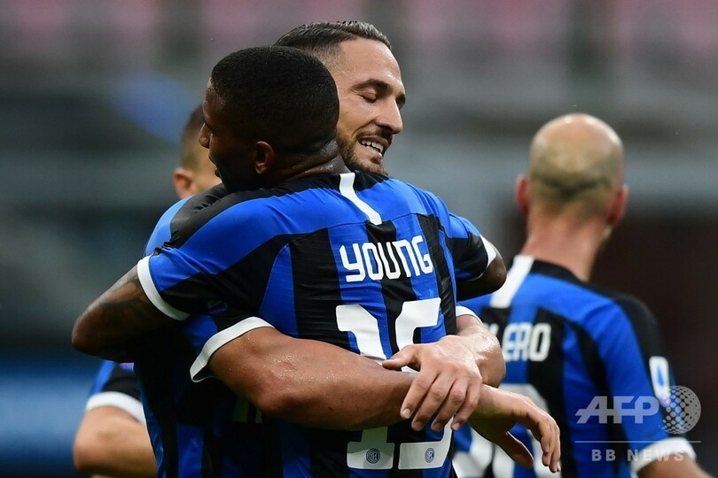 この勝利でインテルは今季残り9試合となる中で、首位ユベントス(Juventus)との勝ち点差8を守っている。