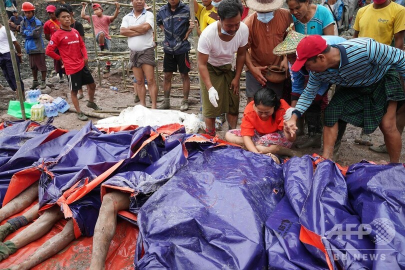 【7月2日 AFP】(更新、写真追加)ミャンマー北部のヒスイ鉱山で2日、モンスーンの豪雨の影響で地滑りが発生し、消防当局によると162人が死亡、54人が負傷した。