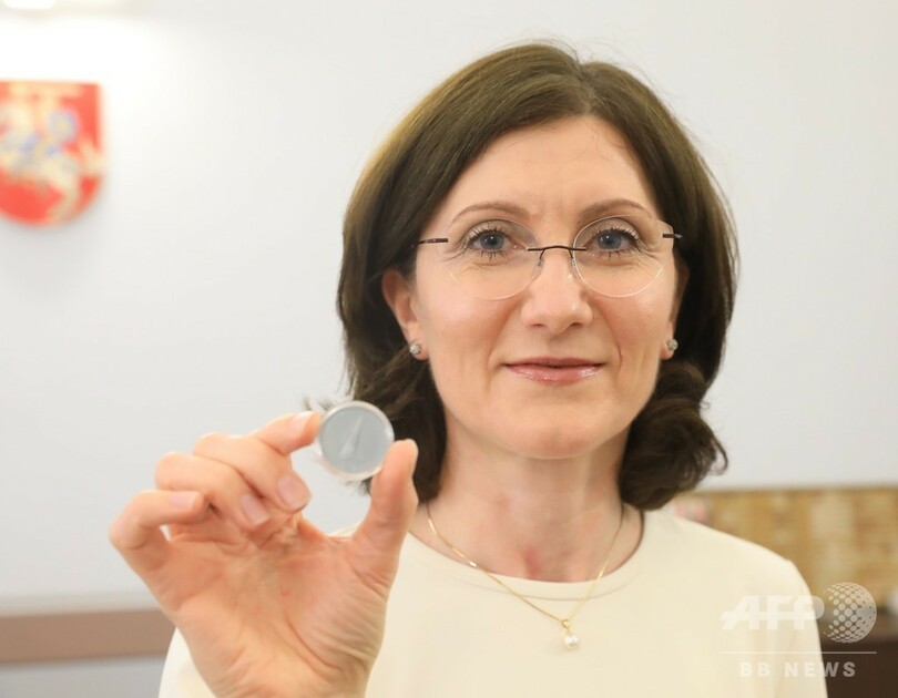 リトアニア中央銀行のアスタ・クニヨシ(Asta Kuniyoshi)副総裁は、「パンデミック(世界的な大流行)のピーク時に、私たちは人々の連帯を目の当たりにした。このコインは、ロックダウン(都市封鎖)の期間だけでなく、希望や団結、連帯といった人類の普遍的価値を記念したものだ」と語っている。(c)AFP