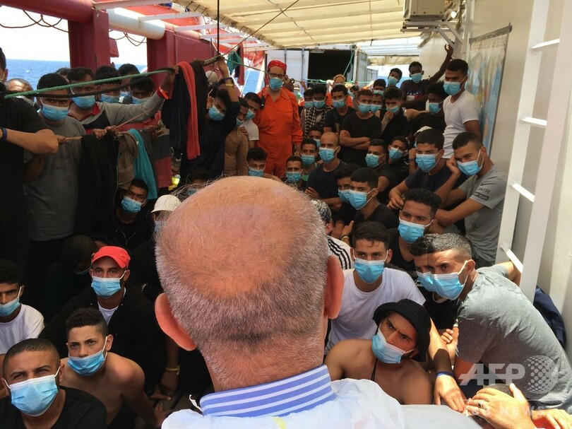 この医療チームは移民らに新型コロナ検査を実施しており、その後はシチリア島のポルトエンペードクレ(Porto Empedocle)に現在停泊中の船「モービーザザ(Moby Zaza)」に移民を移して隔離する予定となっている。