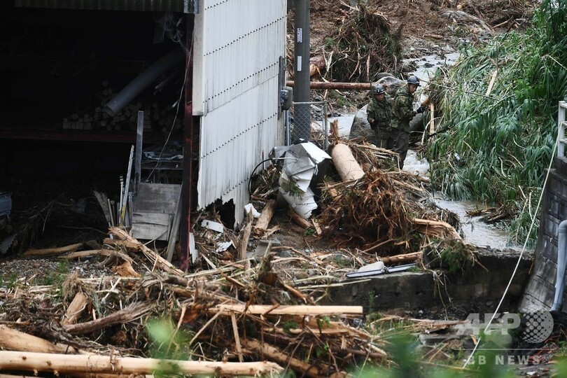 【7月7日 AFP】(写真追加)熊本県を中心に記録的な豪雨に見舞われている九州では、6日から7日にかけて依然強い雨脚に妨げられ、洪水や土砂災害の現場での救助活動が難航している。大雨はさらに続くことが予想されている。
