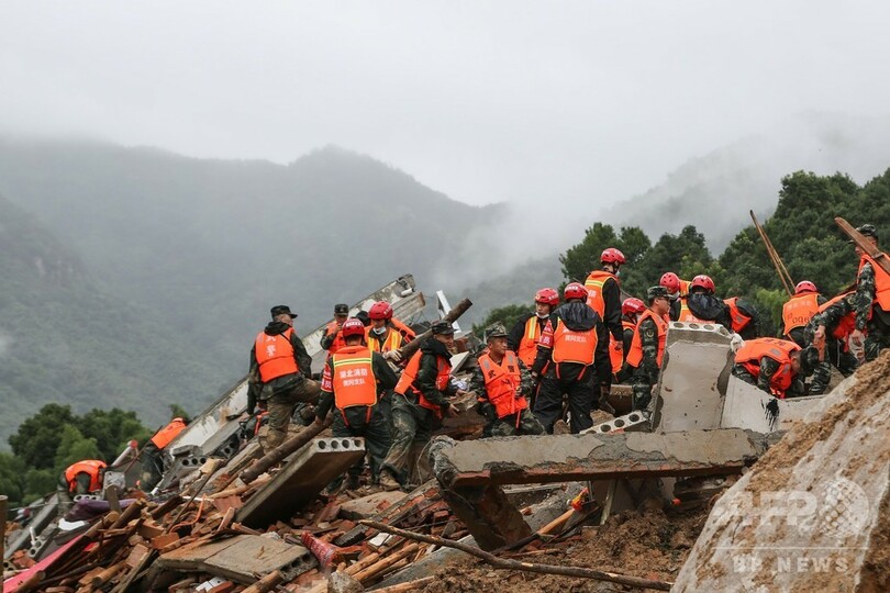8日未明には中部湖北(Hubei)省でも土砂災害が発生し、家屋5棟と村民9人が土砂に埋まった。国営の中国中央テレビ(CCTV)は9日、このうち8人が死亡したと報じた。(c)AFP