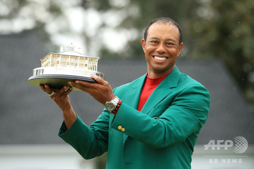 ウッズはゴルフ界のレジェンド、サム・スニード(Sam Snead)氏の米ツアー最多82勝に並んでいるほか、メジャー最多勝利数でも通算18勝のジャック・ニクラス(Jack Nicklaus)氏に次ぐ歴代2位となっている。(c)AFP