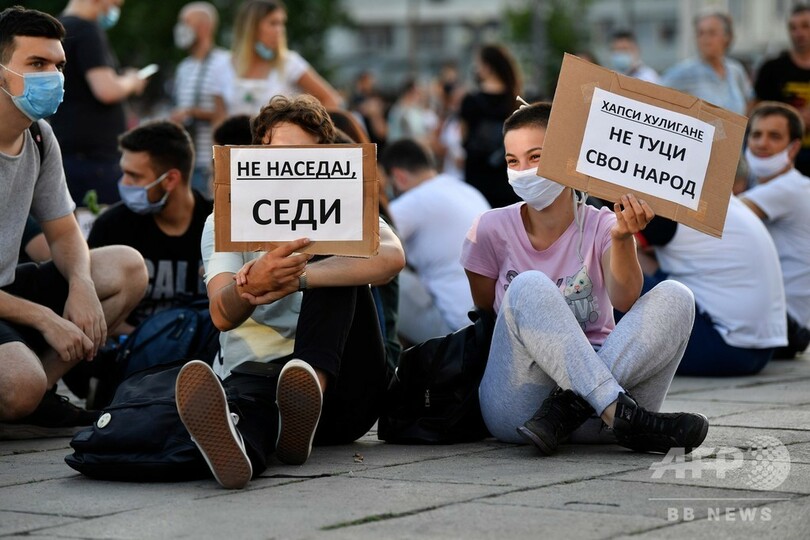 【7月10日 AFP】新型コロナウイルス対策の外出制限を再導入するとの政府発表に端を発するセルビアの抗議デモは9日、アレクサンダル・ブチッチ(Aleksandar Vucic)大統領が方針を撤回したにもかかわらず、3日目に突入した。批判の矛先は今や、大統領のコロナ危機対応全般へと向かっている。