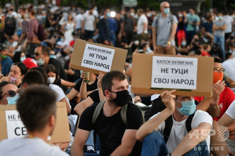 【7月10日 AFP】新型コロナウイルス対策の外出制限を再導入するとの政府発表に端を発するセルビアの抗議デモは9日、アレクサンダル・ブチッチ(Aleksandar Vucic)大統領が方針を撤回したにもかかわらず、3日目に突入した。批判の矛先は今や、大統領のコロナ危機対応全般へと向かっている。