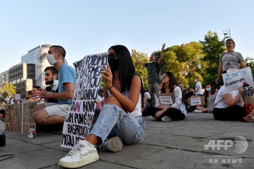 【7月10日 AFP】新型コロナウイルス対策の外出制限を再導入するとの政府発表に端を発するセルビアの抗議デモは9日、アレクサンダル・ブチッチ(Aleksandar Vucic)大統領が方針を撤回したにもかかわらず、3日目に突入した。批判の矛先は今や、大統領のコロナ危機対応全般へと向かっている。