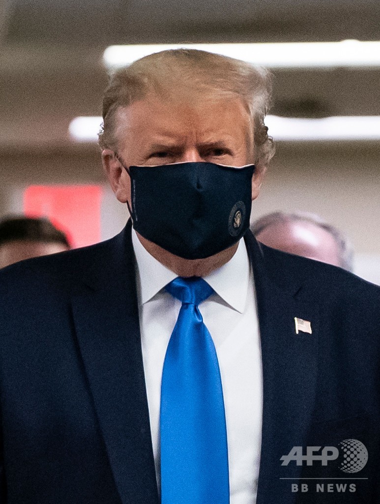 トランプ氏は負傷した米兵たちを見舞うため首都ワシントン郊外にあるウォルター・リード米軍医療センター(Walter Reed National Military Medical Center)を訪れ、大統領の紋章があしらわれた黒いマスクを着用して同センターの廊下を歩いた。