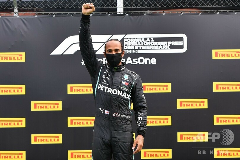 表彰台でハミルトンは拳を突き上げ、世界中で広がる人種差別への抗議活動に敬意を表した。