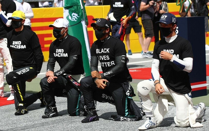 表彰台でハミルトンは拳を突き上げ、世界中で広がる人種差別への抗議活動に敬意を表した。