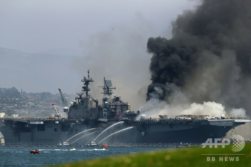 【7月13日 AFP】米当局や地元メディアによると、12日、カリフォルニア州サンディエゴ(San Diego)の海軍基地に整備のため停泊していた強襲揚陸艦「ボノム・リシャール(Bonhomme Richard)」で爆発による大規模な火災が発生し、21人が負傷した。