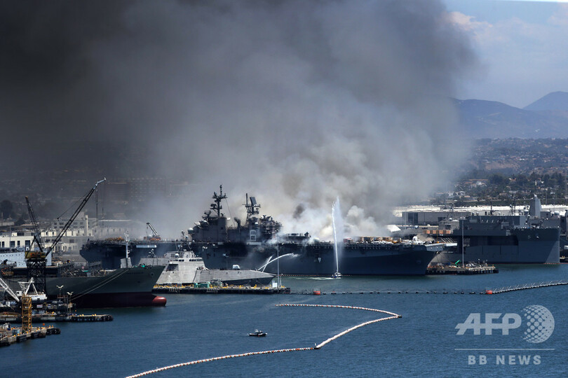 【7月13日 AFP】米当局や地元メディアによると、12日、カリフォルニア州サンディエゴ(San Diego)の海軍基地に整備のため停泊していた強襲揚陸艦「ボノム・リシャール(Bonhomme Richard)」で爆発による大規模な火災が発生し、21人が負傷した。