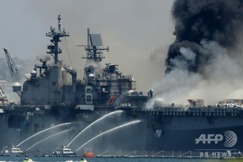 【7月13日 AFP】米当局や地元メディアによると、12日、カリフォルニア州サンディエゴ(San Diego)の海軍基地に整備のため停泊していた強襲揚陸艦「ボノム・リシャール(Bonhomme Richard)」で爆発による大規模な火災が発生し、21人が負傷した。