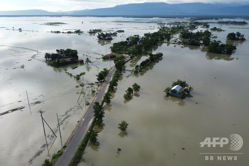 【7月15日 AFP】(写真追加)南アジアの雨期の洪水によりほぼ400万人が打撃を受け、バングラデシュではこの10年で最大級の激しい雨により、これまでに国土の3分の1が浸水している。同国の当局者が14日、明らかにした。