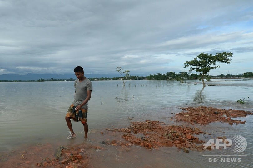 【7月15日 AFP】(写真追加)南アジアの雨期の洪水によりほぼ400万人が打撃を受け、バングラデシュではこの10年で最大級の激しい雨により、これまでに国土の3分の1が浸水している。同国の当局者が14日、明らかにした。