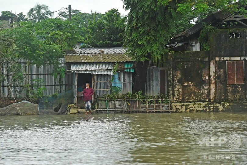 【7月15日 AFP】(写真追加)南アジアの雨期の洪水によりほぼ400万人が打撃を受け、バングラデシュではこの10年で最大級の激しい雨により、これまでに国土の3分の1が浸水している。同国の当局者が14日、明らかにした。