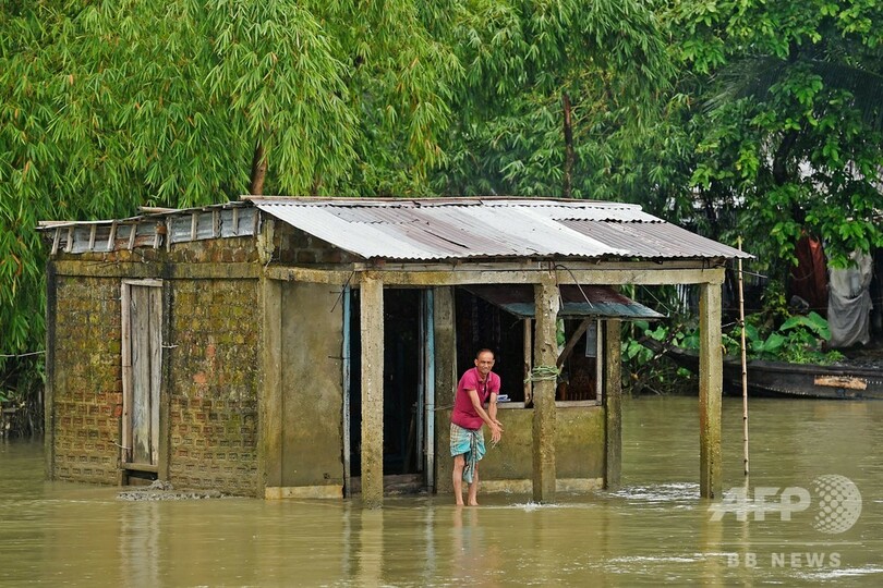 【7月15日 AFP】(写真追加)南アジアの雨期の洪水によりほぼ400万人が打撃を受け、バングラデシュではこの10年で最大級の激しい雨により、これまでに国土の3分の1が浸水している。同国の当局者が14日、明らかにした。