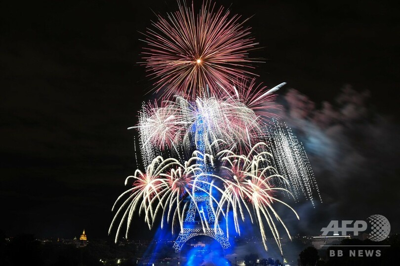 【7月15日 AFP】革命記念日(Bastille Day)を迎えたフランスでは14日夜、パリのエッフェル塔(Eiffel Tower)で花火が打ち上げられた。