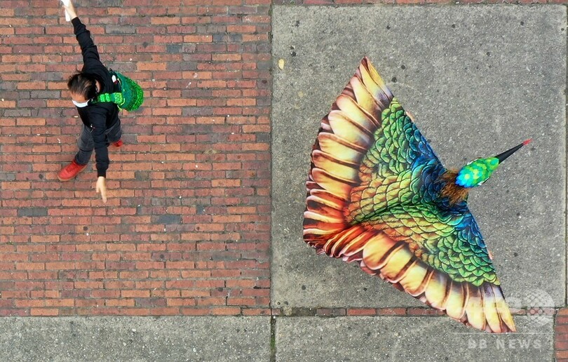 【7月20日 AFP】コロンビア・ボゴタで、ハチドリをモチーフにした衣装を着て、街中でパフォーマンスをする人々。このパフォーマンスは、市長が支援する「翼広げて(Alas de distancia)」作戦として知られており、新型コロナウイルス感染拡大の予防策として、対人距離を取るよう勧めている。(c)AFP