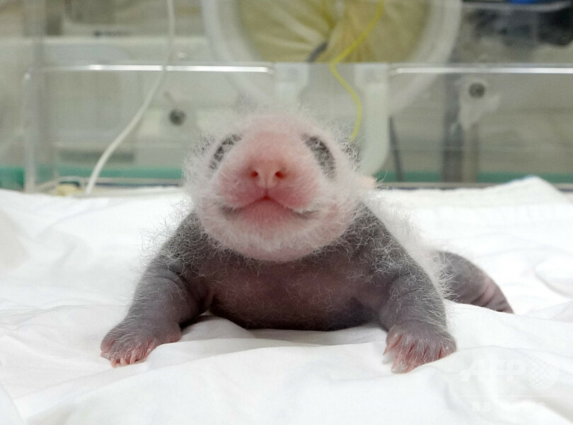 6月に誕生した186グラムの赤ちゃんは、2008年に当時の台中友好関係の象徴として中国から贈られたパンダを親に持つ。(c)AFP