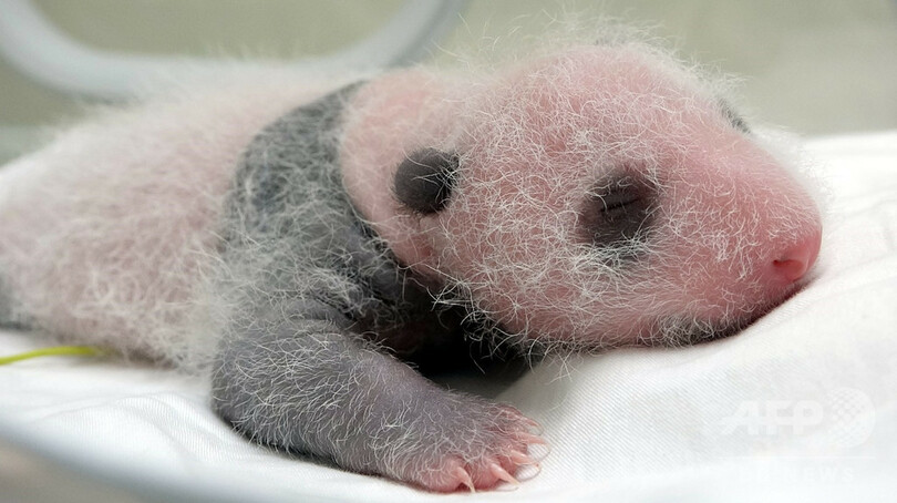 6月に誕生した186グラムの赤ちゃんは、2008年に当時の台中友好関係の象徴として中国から贈られたパンダを親に持つ。(c)AFP