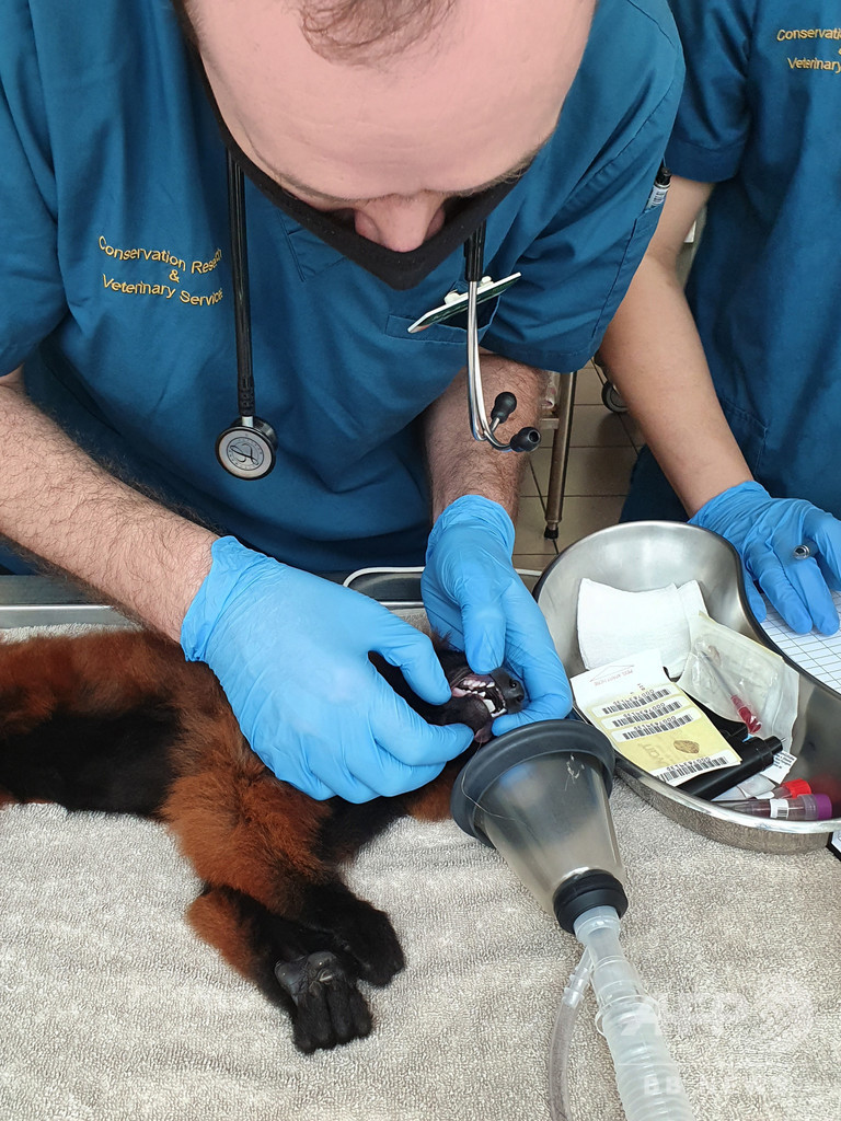 双子のアカエリマキキツネザルの誕生自体は少し前だが、新型コロナウイルスによるロックダウン(都市封鎖)の影響で同園が数か月にわたり閉園していたため、一般公開は最近になって始まった。