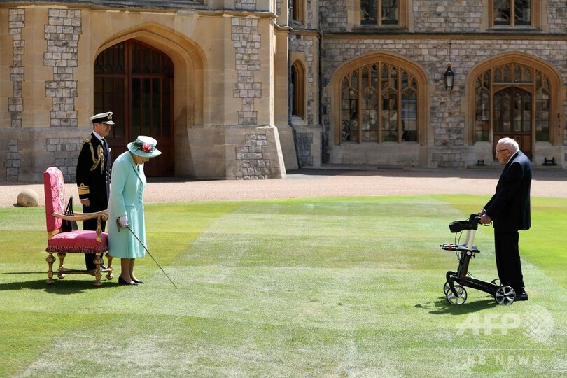 【7月18日 AFP】新型コロナウイルスが流行する中で英国の医療従事者らのために約3300万ポンド(約44億円)の寄付を集め、国民的英雄となったトム・ムーア(Tom Moore)さん(100)が17日、エリザベス女王(Queen Elizabeth II、94)からナイトの爵位を正式に授与された。