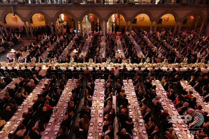 晩さん会ではまた、平和賞を除く各賞の受賞者によるスピーチも恒例となっている。平和賞の授賞式はストックホルムではなくノルウェーの首都オスロで行われる。財団によると、医学生理学・物理学・化学・文学・平和・経済学の各賞受賞者の発表は予定通り10月5〜12日に行われる。(c)AFP