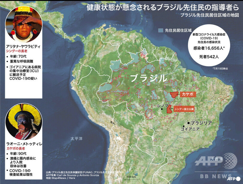 タピ氏はAFPに対し、70代のアリタナ氏はシングー(Xingu)の先住民区域にある自身が居住する村で呼吸困難に陥り、新型コロナウイルスの検査をしたところ陽性と判定されたと話した。病院に搬送されたものの、容体は深刻だという。