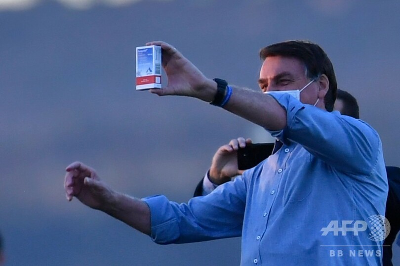 隔離中の19日にも、ボルソナロ氏は公邸で幅約2メートルの人工池を挟んで支持者らと交流。マスクを外して話しかけ、新型コロナ治療のため服用しているという抗マラリア薬「ヒドロキシクロロキン」の箱を得意げに掲げてみせた。
