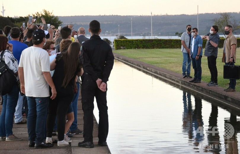 隔離中の19日にも、ボルソナロ氏は公邸で幅約2メートルの人工池を挟んで支持者らと交流。マスクを外して話しかけ、新型コロナ治療のため服用しているという抗マラリア薬「ヒドロキシクロロキン」の箱を得意げに掲げてみせた。
