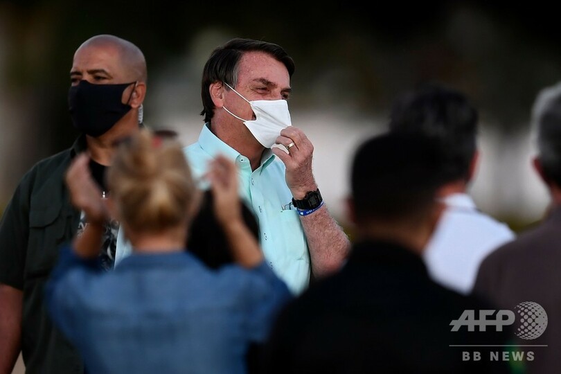 隔離中の19日にも、ボルソナロ氏は公邸で幅約2メートルの人工池を挟んで支持者らと交流。マスクを外して話しかけ、新型コロナ治療のため服用しているという抗マラリア薬「ヒドロキシクロロキン」の箱を得意げに掲げてみせた。