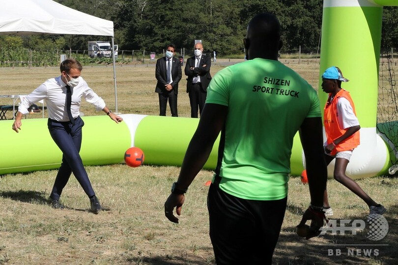 仏大統領、コロナ禍の若者支援を約束 サッカー交流も