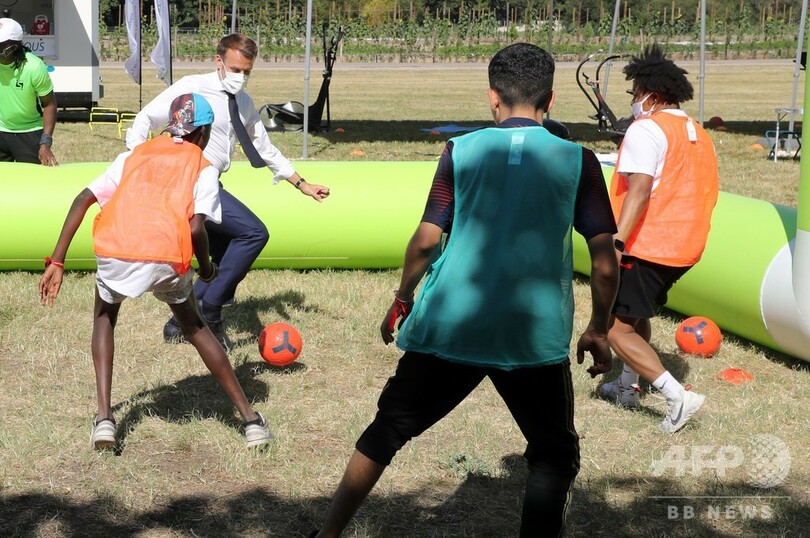 仏大統領、コロナ禍の若者支援を約束 サッカー交流も