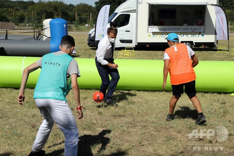 仏大統領、コロナ禍の若者支援を約束 サッカー交流も
