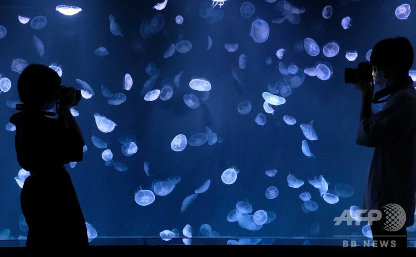 【7月23日 AFP】東京のサンシャイン水族館(Sunshine Aquarium)に今月、横幅が約14メートルの水槽にクラゲのみが展示された「クラゲパノラマ」が登場した。同館はこの新しいアトラクションを、「癒やしの空間」と紹介している。(c)AFP